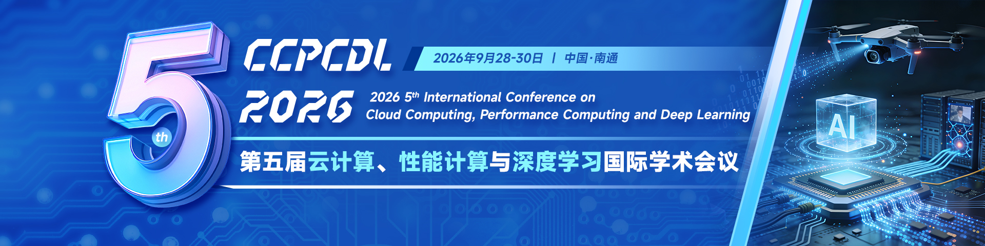 To address the dynamic evolution of computer science and the rapidly advancing frontier technologies in the field, 2026 5th International Conference on Cloud Computing, Performance Computing and Deep Learning will be held on September 28-30, 2026, in Nantong, China.